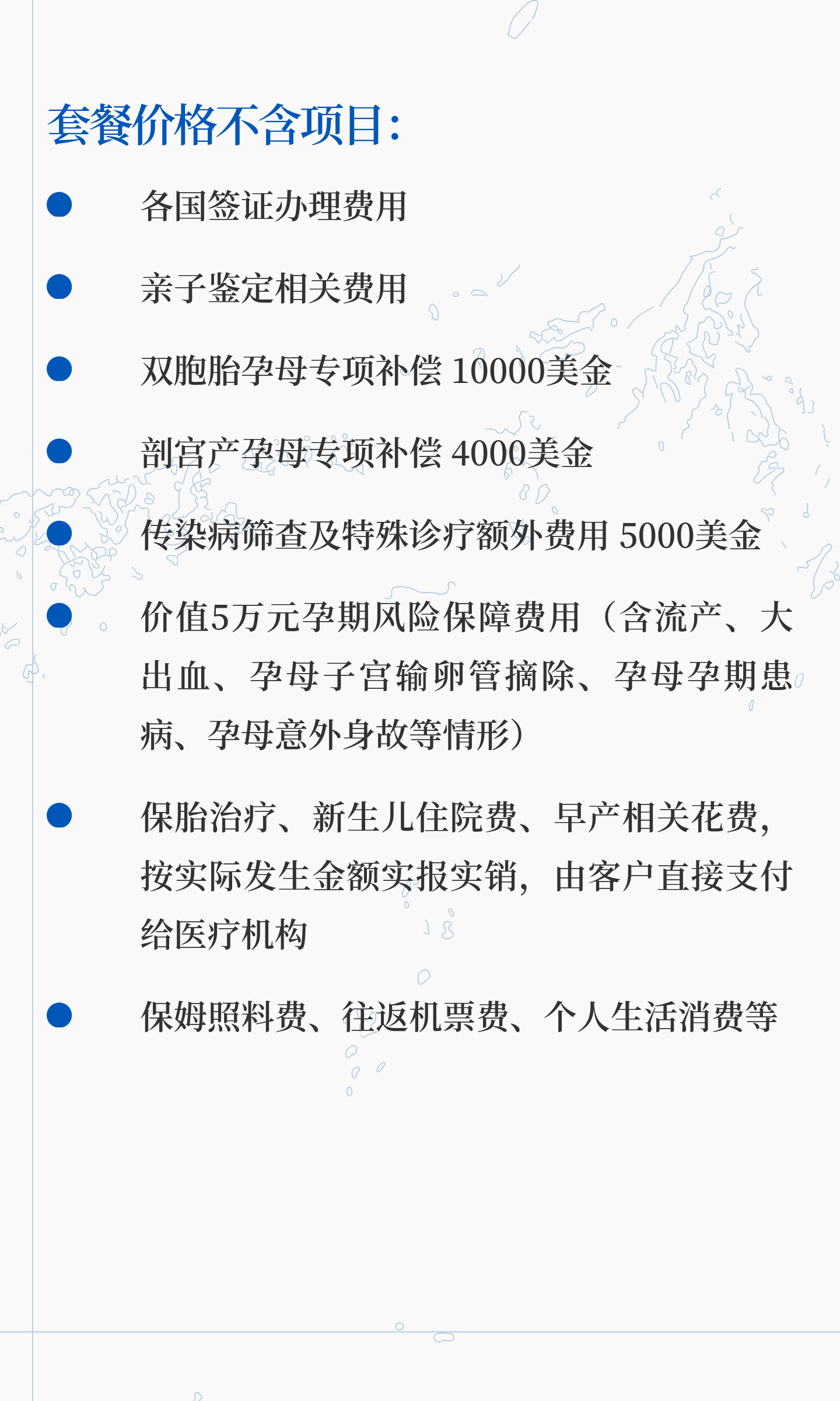 • 传染病筛查及特殊诊疗额外费用 5000美金